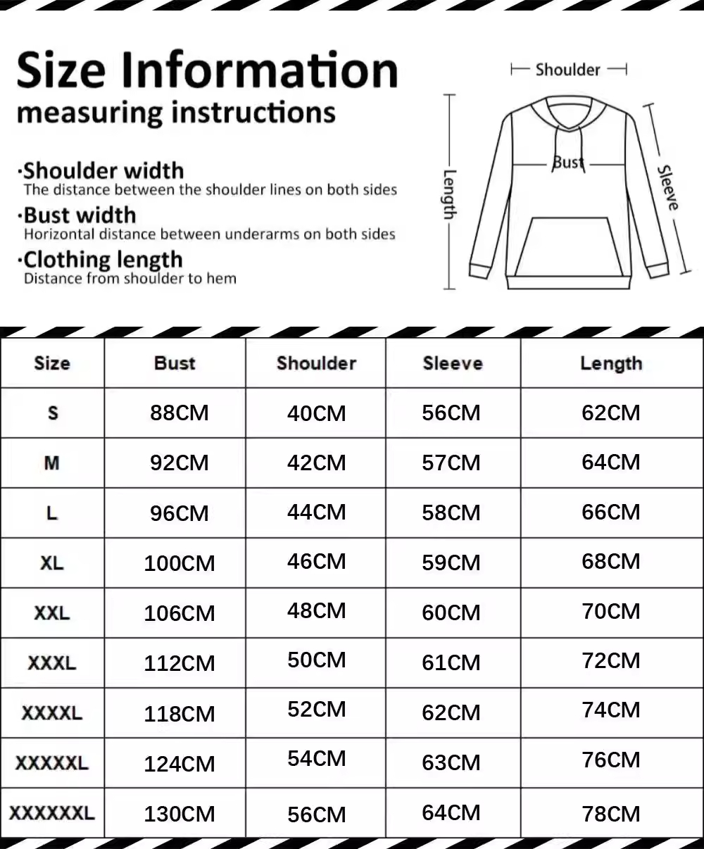 Sizes: S, M, L, XL, 2XL, 3XL, 4XL, 5XL